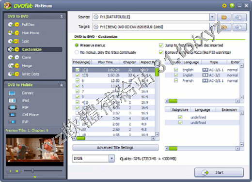 DVDFab 讓你製作完美的 DVD 影片備份!備份全部 DVD 內容 - 包括功能表,電影預告